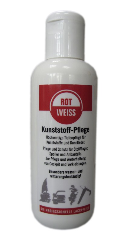 ROTWEISS Kunststoff-Pflege verhindert ein Verspröden dieser Materialien. Durch lang anhaltende Porenversiegelung lassen sich Stoßstangen, Rückspiegel usw. leicht reinigen.