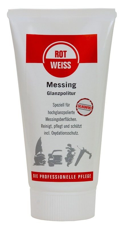 150 ml Tube Die ROTWEISS Messing - Glanzpolitur bringt für unbehandeltes Messing, spiegelnden Hochglanz und schützt vor Oxydation. Die Messingpolitur ist silikonfrei. Politur auf ein weiches Tuch geben und das Teil kreisförmig einreiben, bis es sich anschwärzt. Danach mit einem sauberen Baumwolltuch nachpolieren. Sehr gut haben sich zum Polieren ROTWEISS Polierfäden bewährt.